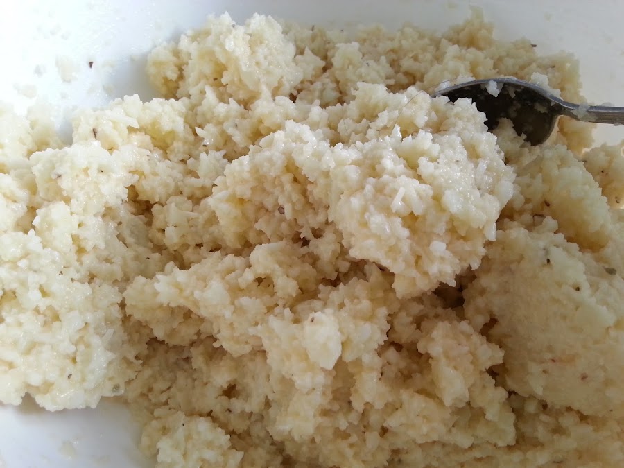 5. - Una vez fría la coliflor, le agregamos el resto de ingredientes y removemos bien, hasta que nos quede una pasta.