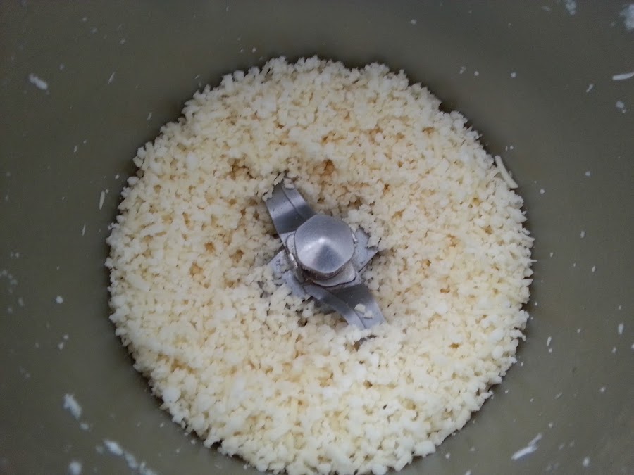 2. - La rallamos en un robot u la dejamos rallada, que parezca "cous cous".