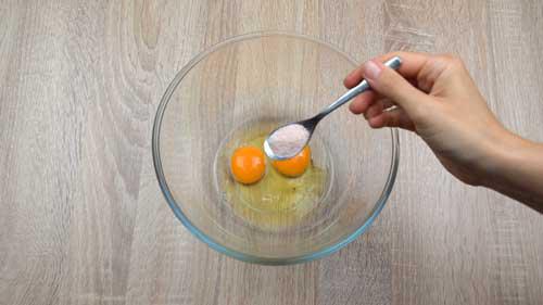 3. En un recipiente grande agregamos los huevos, sal y pimienta al gusto. Batimos muy bien con unas varillas o un tenedor hasta que doble su volumen.