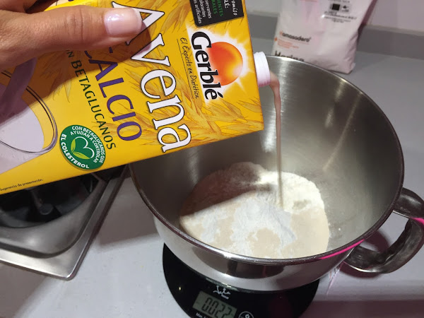 2. Añadimos la levadura seca a la harina, la bebida de avena y las tres yemas de huevos frescos de gallinas felices. Amasamos a velocidad baja durante 5 minutos.