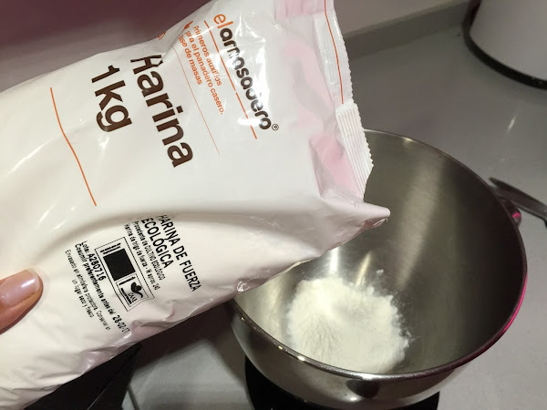 1. Empezamos poniendo la harina en el bol de la Kitchen Aid. Como ya os he comentando ésta es la primera ocasión que utilizo harinas de el Amasadero, y he quedado muy contenta con el resultado. Sólo tenéis que mirar la fotografía del resultado final para apreciar lo lisa y suave que ha quedado la masa.