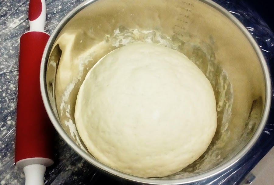 Así de oronda luce nuestra masa de pizza después de levar durante una hora. Hemos probado distintas masas y por unanimidad esta es la elegida en nuestra casa. La receta es muy sencilla, solo tenéis que dejar que leve y la tendréis lista para poner los ingredientes que mas os gusten.