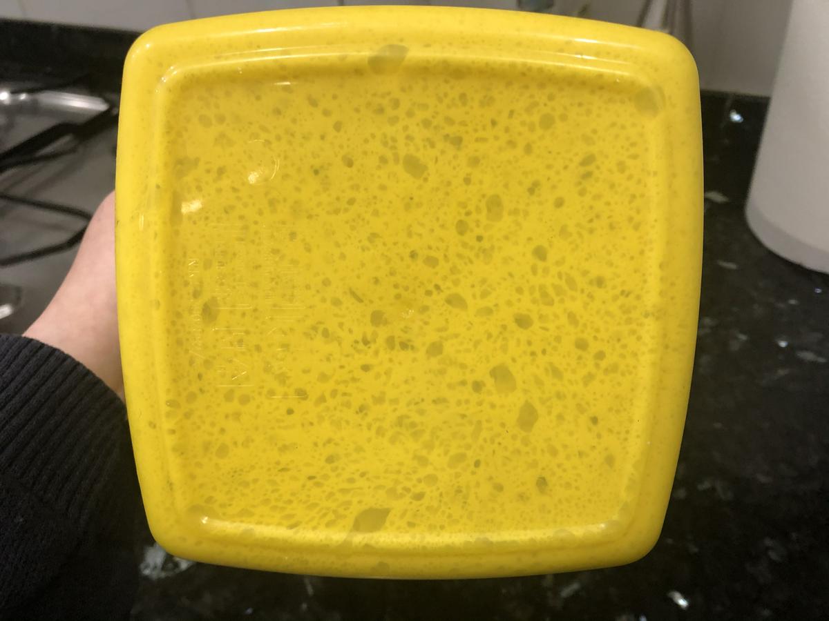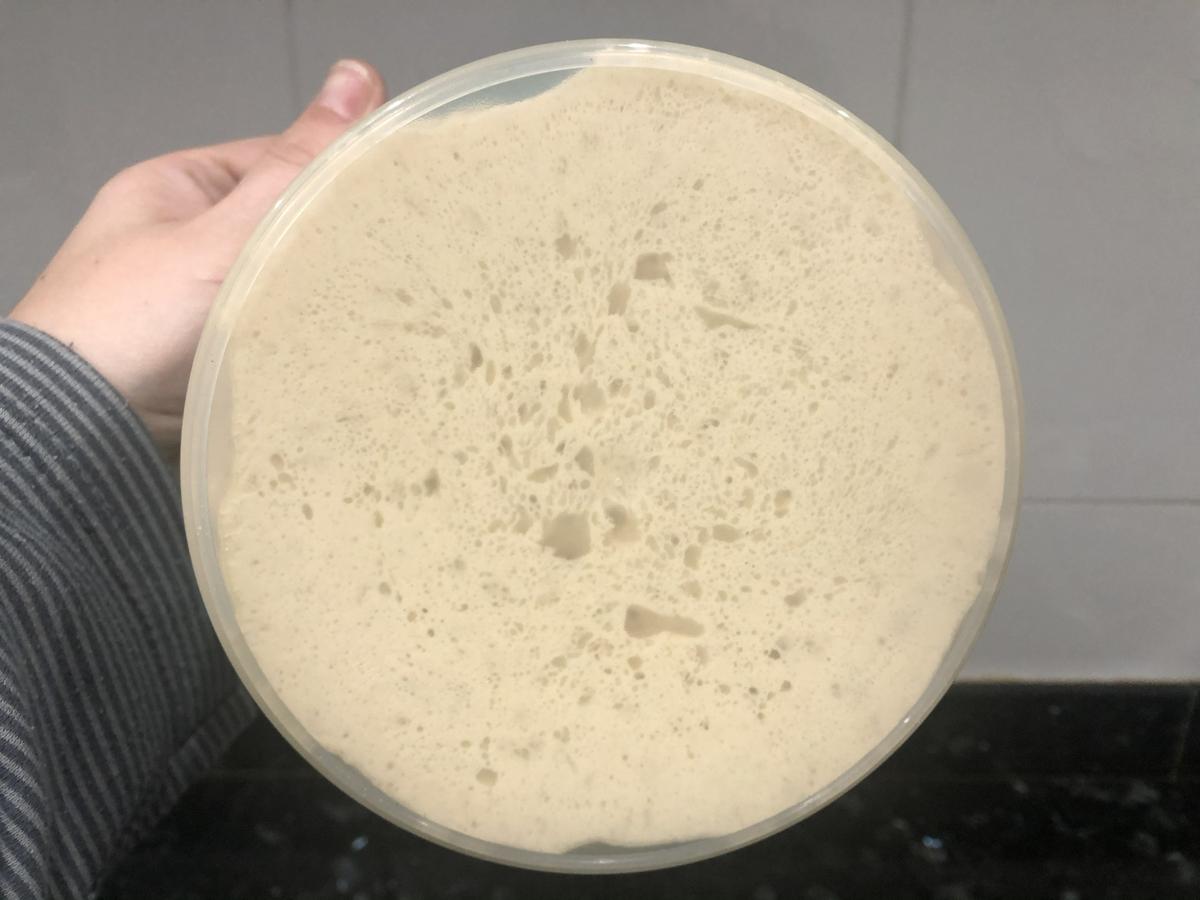 Yo peparé un par de bases después de dos días de reposo, y la que quedaba, la preparé al cuarto día y el resultado fue todavía mejor. Para la próxima vez, porque ya os digo que va a haber unas cuantas más… alargaré el reposo en la nevera hasta esos 4 días, porque realmente, merece mucho la pena. En las fotos, se ve como la masa del taper amarillo, que es el que ha estado más tiempo, tiene muchas más burbujitas, la masa está más activa y aireada que la de la otra imagen, que es la que ha reposado durante dos días.