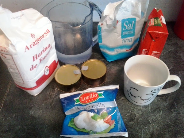 Con esta cantidad dá para una pizza, si queréis doblar las cantidades para congelar una parte hay que tener en cuenta que depende de la harina puede haceros falta poner más cantidad para que quede igual de elástica. Como veis nosotros le hechamos mozzarella fresca , tomate y atún. La mozzarella está deliciosa en pizza y para quien no sea amante de los quesos con sabor fuerte, es la mejor opción