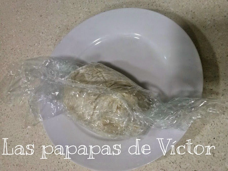 Enharinaremos un poco la mesa de cocina o el mármol y amasaremos después en el mismo bol la dejaremos reposar una hora tapada con un paño de cocina en un sitio cálido