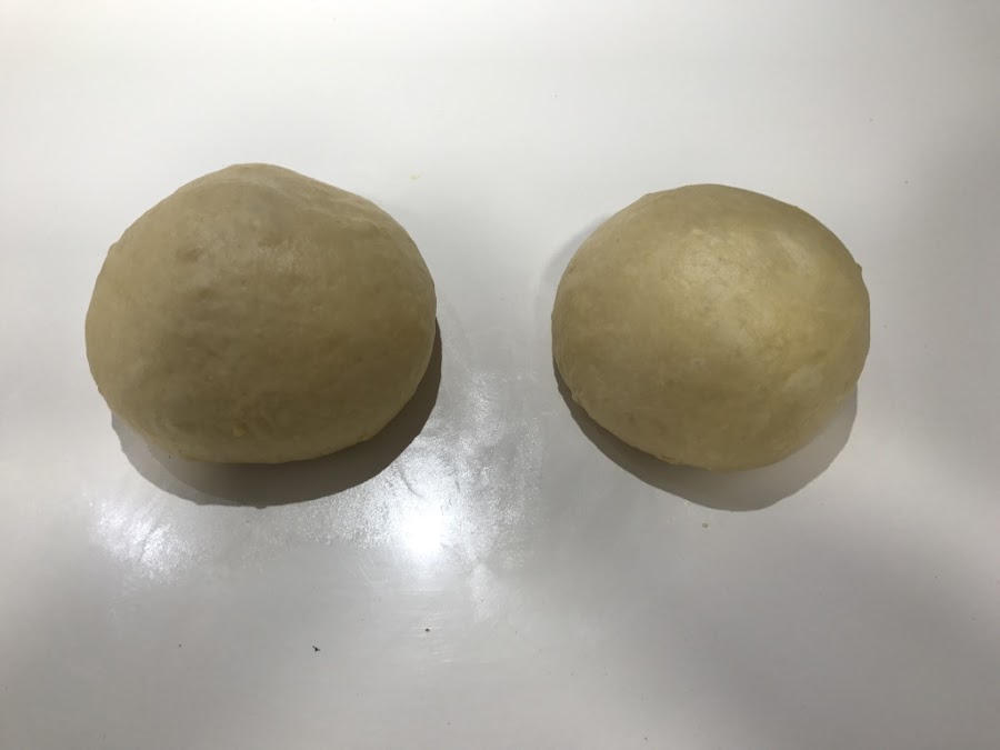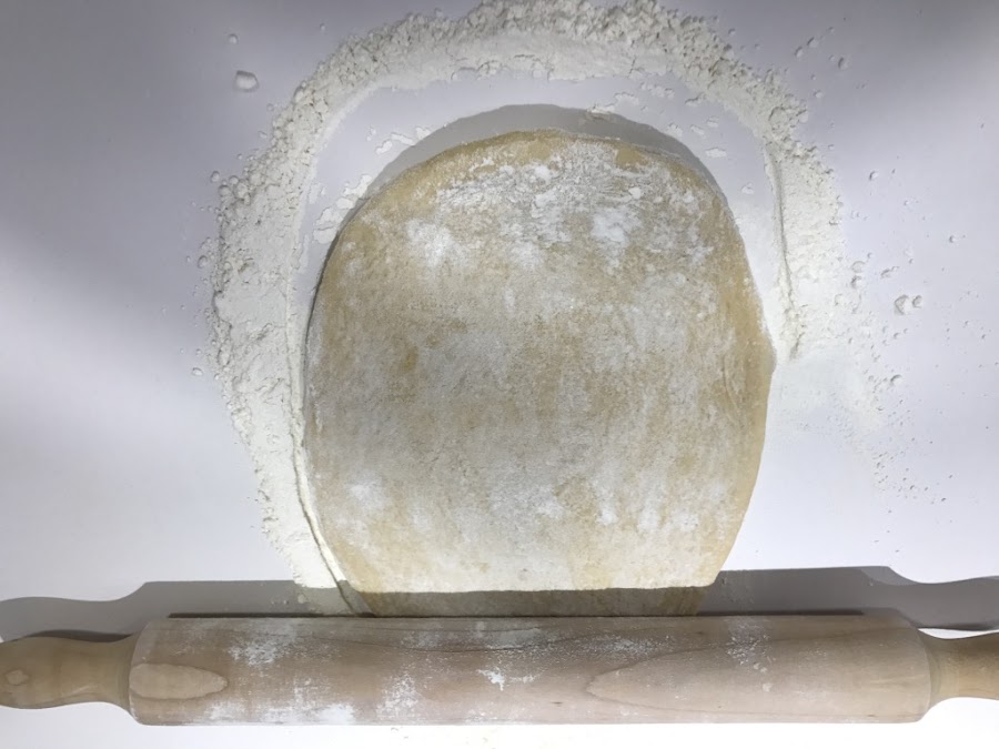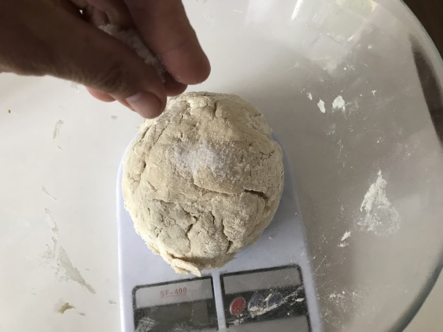 Ahora ponemos en la mesa un poco de harina y estiramos las dos bolas.
