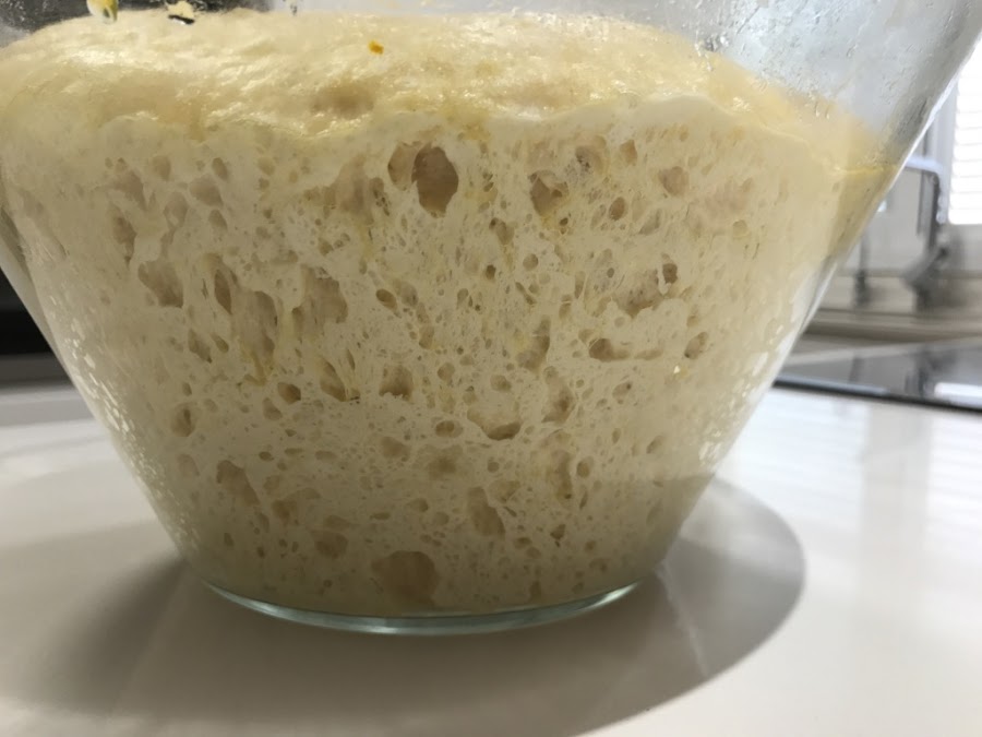 Cuando pasa el tiempo de fermentación podemos observar las burbujas que nos ha dejado esta maravillosa masa.