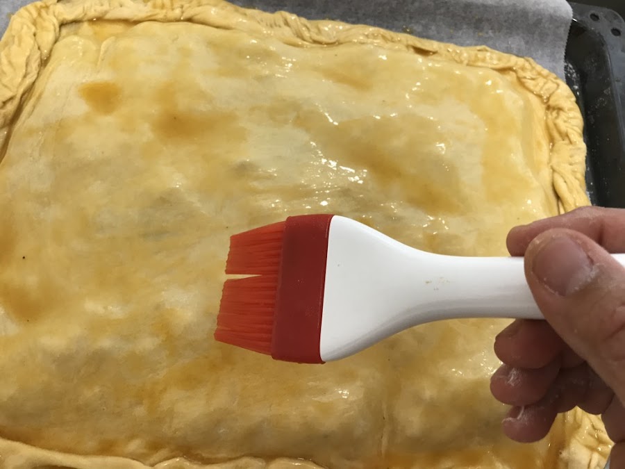 Pintamos la empanada con aceite sobrante de sofrito del relleno.