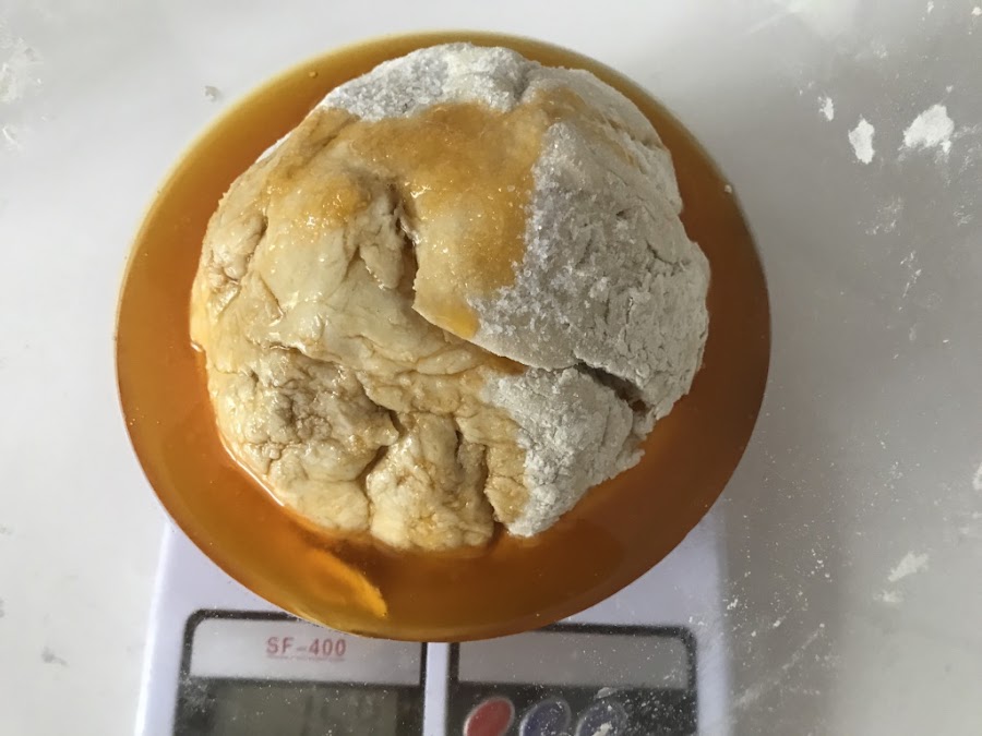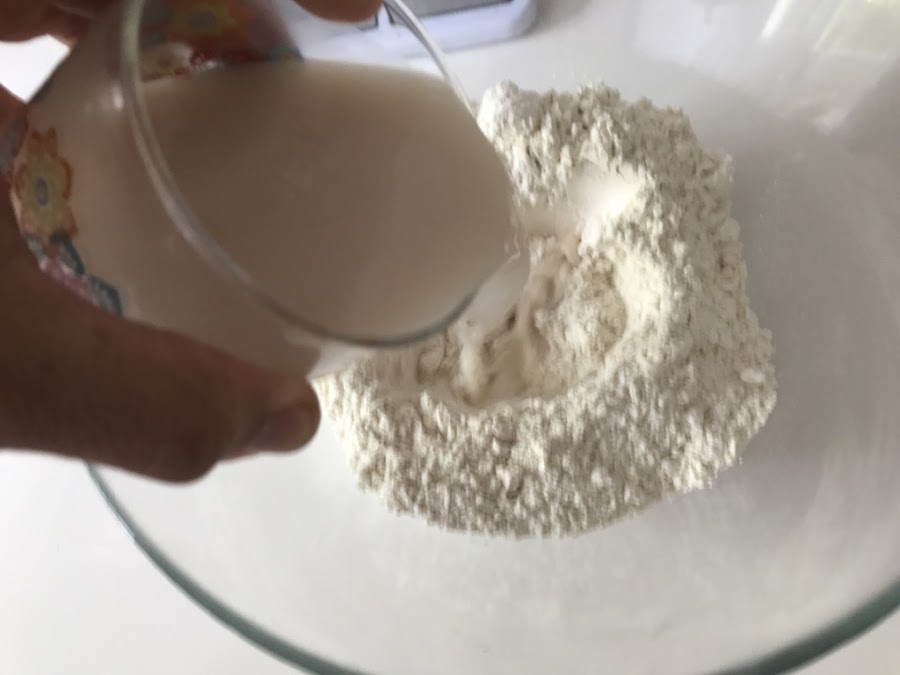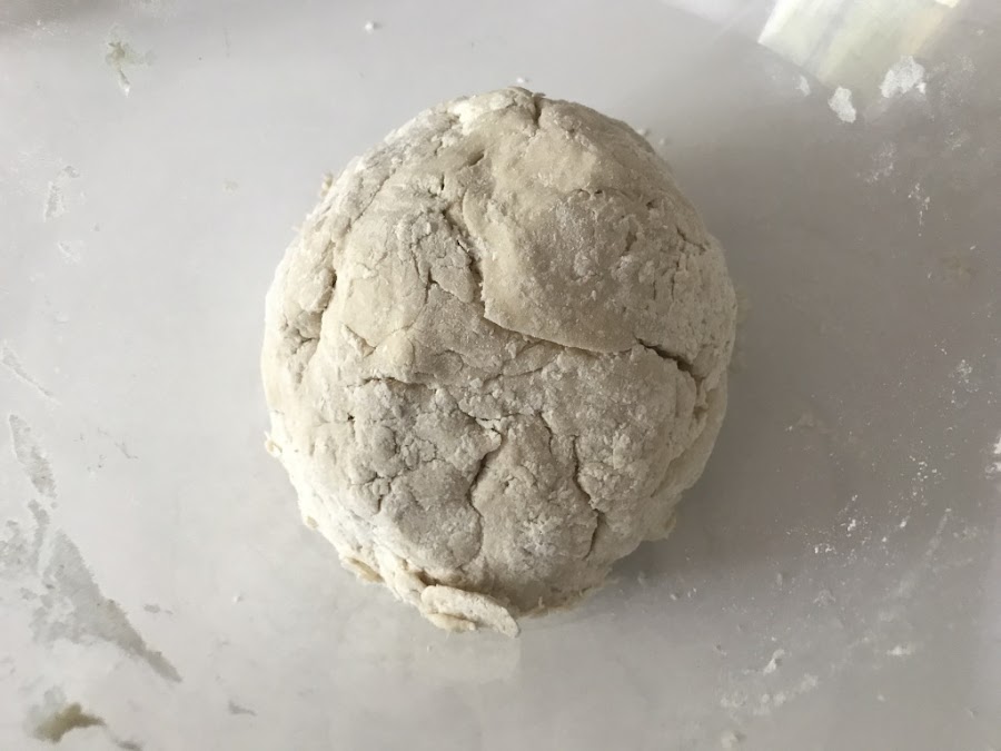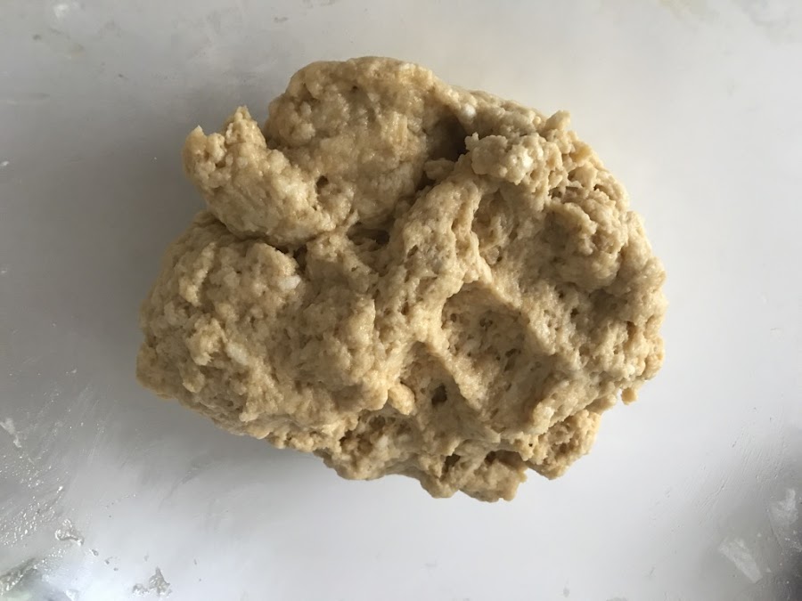 Amasamos hasta hacer una bola, el líquido es poco así que puede ser que quede con una consistencia de migas.