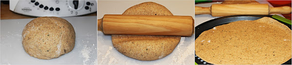 Pasado el tiempo de leudado, estira sobre una superficie enharinada (integral) y estira con un rodillo o dedos hasta dar la forma deseada.