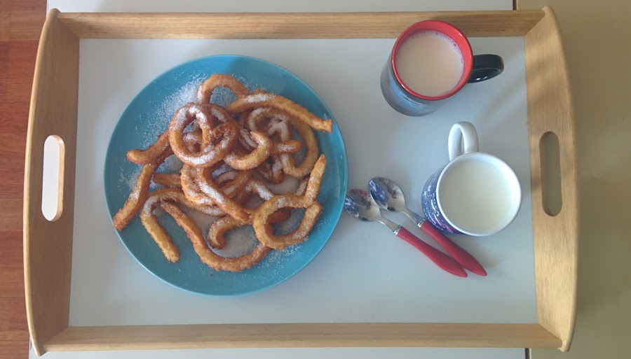 ¿A quién no le apetecen unos churros el domingo por la mañana? Aprendí está receta de una amiga, a base de hacer churros para 40 personas estando de casa rural. Me dio tiempo a aprenderme la receta, hincharme a churros y aborrecerlos por un tiempo. Intenté hacerlos este domingo por primera vez y han tenido una gran acogida en casa... ¡preparaos para nochevieja!