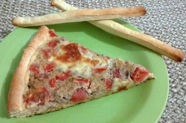Relleno de atún: lo hice con 1 cebolla rehogada, 1 pizca de sal y pimienta, le agregué (fuera del fuego) 1 tomate en fruta cortado en cubos, 1 lata de atún en trozos al natural, 1 huevo y si desean pueden incorporar 3 cdas. de queso crema. Para finalizar le puse unos trozos de queso cremoso por encima.