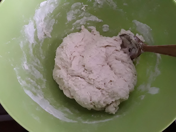 Cunado ya esté mezclado cada cosa en su bol, añadiremos ya el agua con la levadura a la harina y mezclamos con una cuchara de madera hasta obtener una masa lisa, seguidamente añadiremos el aceite y seguimos mezclado con la cuchara, (se puede también mezclar con las manos),