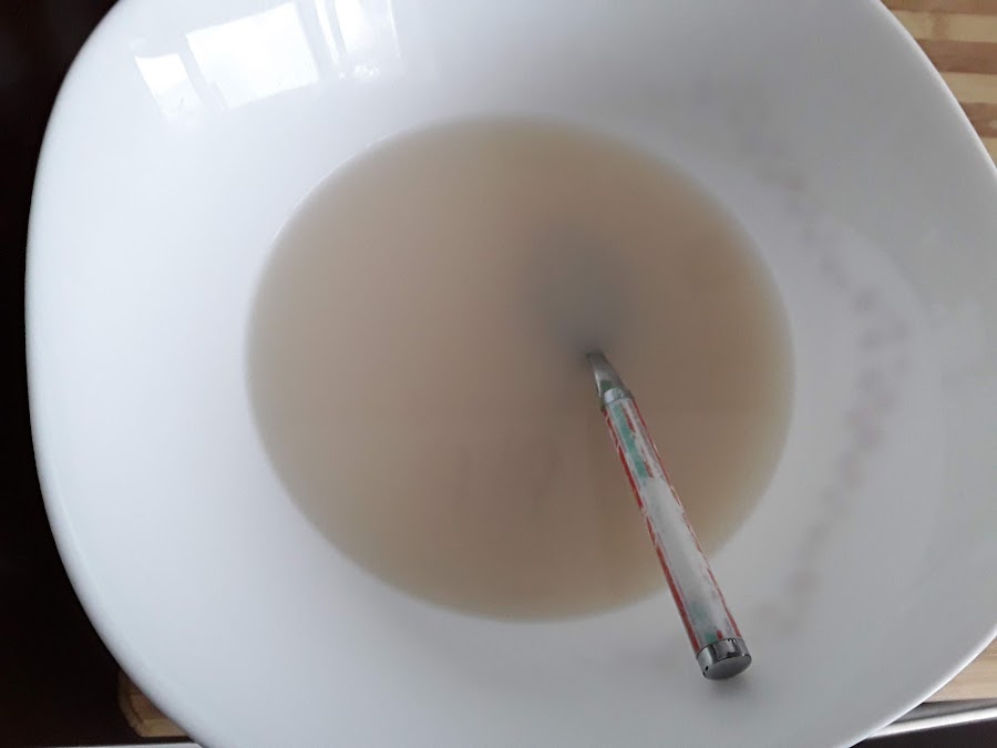 En primer lugar cogemos un bol y ponemos la harina, la sal y el azúcar, mezclamos con una cuchara de madera bien, por otro lado cogemos otro bol y ponemos el agua tibia y la levadura, removemos con una cuchara para que se vaya hidratando.