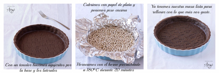 Envolvemos con film transparente y refrigeramos unos 20 minutos. Ahora que ya tenemos la masa lista la preparamos para hornearla. (Fotos de arriba)
