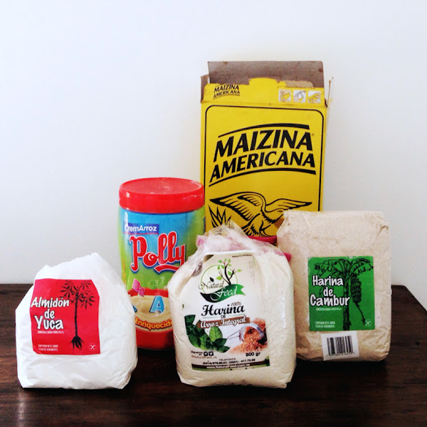 Les recomiendo ir comprando de a poco harinas y almidones sin gluten disponibles en el mercado (con la escasez de harina de trigo y de maíz en este país, han comenzado a surgir una cantidad importante de otros tipos de harina). También procurarse algo de goma xanthan o xantana (disponible en mercadolibre.com) y opcionalmente lecitina de soja (en el Mercado de Chacao), sobre todo para los que deseen hacer pan.