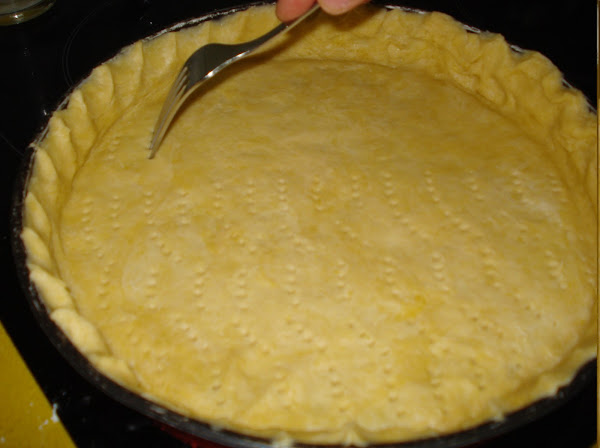 La estiramos con el rodillo hasta el tamaño deseado y la ponemos sobre el molde, formamos los bordes y pinchamos la masa con un tenedor para que no suba y ¡YA ESTÁ LISTA PARA USAR!