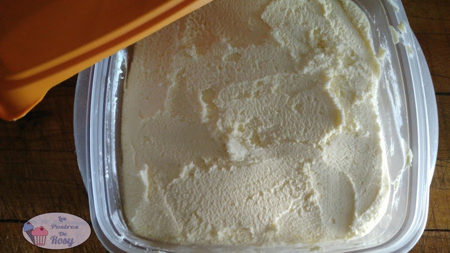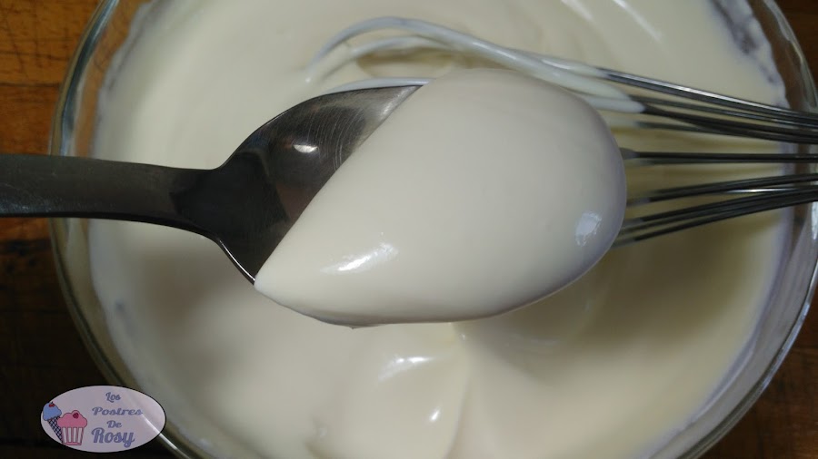 - Batimos con unas varillas, durante unos segundos, hasta que la nata (crema de leche) se corte y tenga aspecto de crema densa.
