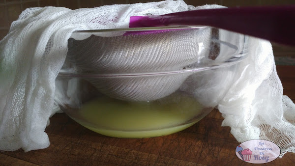 - Ponemos la nata (crema de leche) cortada en el colador.