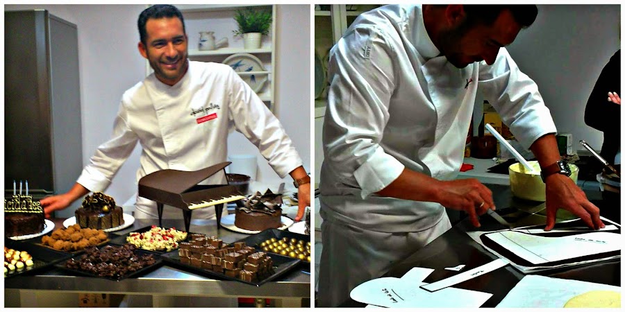 El sábado estuve en una master class de chocolate que impartió David Pallás, organizado por Expodulcesbilbao en Magu´s Cupcake (Erandio). Fue un día muy productivo, donde aprendimos a trabajar el chocolate (teniendo en cuenta las diferentes temperaturas de fusión, templado y trabajo de las coberturas), a elaborar bombones y rocas, a realizar baños y brillos de chocolate… e incluso, un piano de chocolate!!!