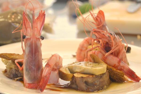 Seguimos con unos pies de cerdo con gambas y boletus (ceps) confitados. Otro plato increíble, lo puedes montar en cinco minutos si tienes los ingredientes preparados con antelación, ideal para una cena de mucho compromiso, y increíblemente fácil de hacer, si un grande como Pere Arpa te enseña sus secretos ;-)