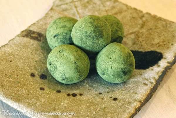 7. Mételas en la nevera durante aproximadamente una hora, o hasta que se endurezcan un poco. Acaba de redondear las bolitas con las manos y rebozalas con polvo de té verde sobre una bandeja. Deja las bolitas en la nevera hasta que se endurezcan del todo.