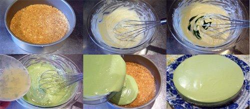 4. Vierte el relleno sobre la corteza de galleta del molde para tartas y extiende uniformemente. Pon la tarta en la nevera al menos durante 3 horas.