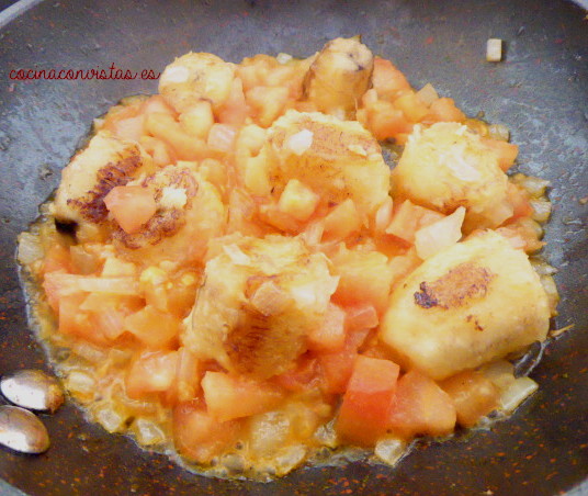 Añadimos el gengibre y el tomate y dejamos todo cocinándose por otros 7 u 8 minutos.