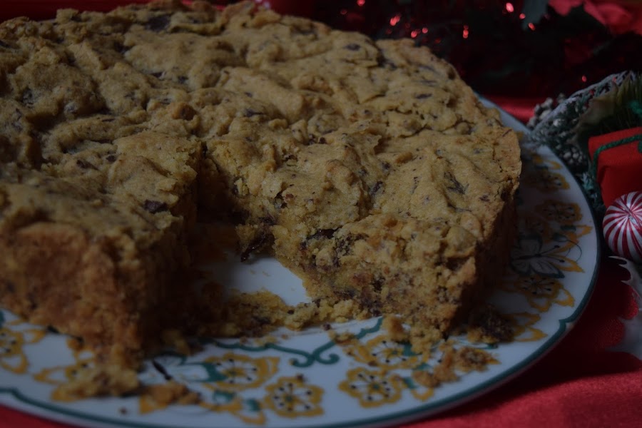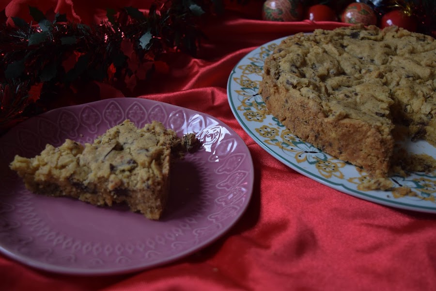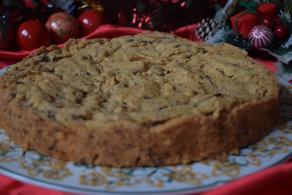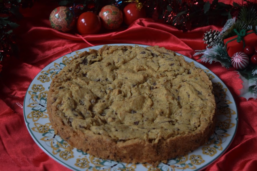 Hoy os traigo una receta un poco clásica aunque diferente a la vez. Estas navidades mis padres y mis abuelos vienen a pasarlas aqui y mis abuelos se quedarán conmigo en su casa y cada vez que habló con él me pregnta si le voy a hacer muchos dulces. Pensando ideas para navidades me acordé de una cookie que comía siempre en el Ginos cuando iba con mis abuelos y que te la ponían en un molde recien hecha. Quería hacer una versión de esa galleta, pero un poco diferente. La he preparado con un molde de 24 cm pensando que en casa vamos a ser 6 y que a todos nos encanta el dulce, pero siempre la podeis adaptar para un molde más pequeño o más grande.