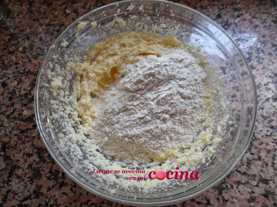 Añadimos la harina tamizada y batimos hasta integrarla.