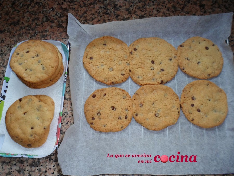 Una vez que estén listas, las ponemos sobre una rejilla para que se enfríen. Y listas, ya tenemos nuestras maxi cookies preparadas.