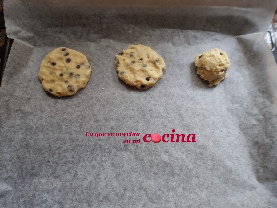 Cuando pongamos las galletas en la bandeja, hay que dejar bastante separación entre ellas porque crecen a lo ancho más que a lo alto, así que cuidado porque sino se os pueden pegar un poco entre sí, como a mí en alguna foto que podéis apreciar que me pasó.