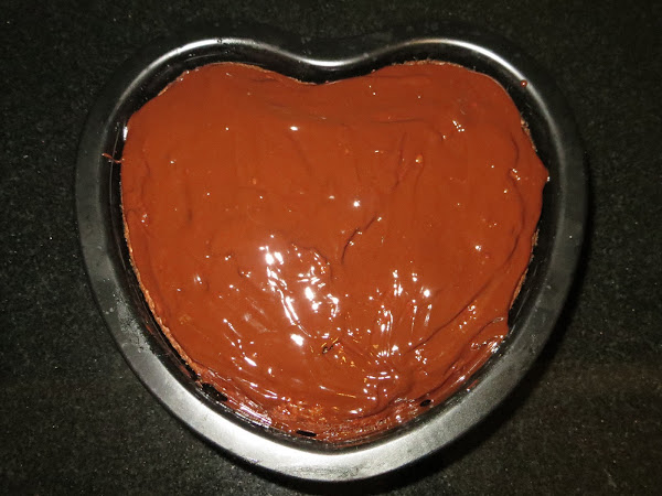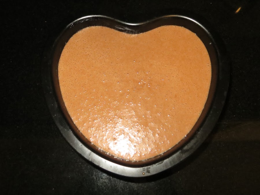 Mientras se hace nuestro bizcocho vamos haciendo la cobertura, derretimos el chocolate con la nata (crema de leche) al baño maría. Cuando ha pasado el tiempo de horno, abrimos la puerta, dejamos un poco reposar el bizcocho y cuando ya esté frío desmoldamos y lo bañamos con el chocolate. Como veréis en la fotografía yo lo deje en el propio molde, pero es que lo tenía que mover y para que no se me estropeará el bizcocho era la mejor solución.