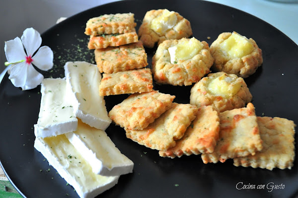 E resultado han sido unas galletas crujientes con un toque de ajo (que llevaba la mahonesa) ideales para acompañar un queso suave como el queso brie con el que nosotros las hemos acompañado.