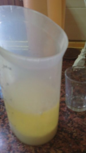 Para el verano evitar problemas con la mayonesa es mejor hacerla con leche, aunque esta es la que yo hago todo el año. La de huevo se me cortaba casi siempre y ya no la hice mas, la que no se me corta es la que se hace en el mortero, pero ay, ay la mano como duele.
