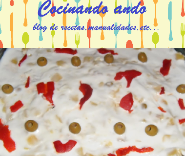 DECORAR CON UNAS TIRAS DE PIMIENTO DE PIQUILLO Y ACEITUNAS