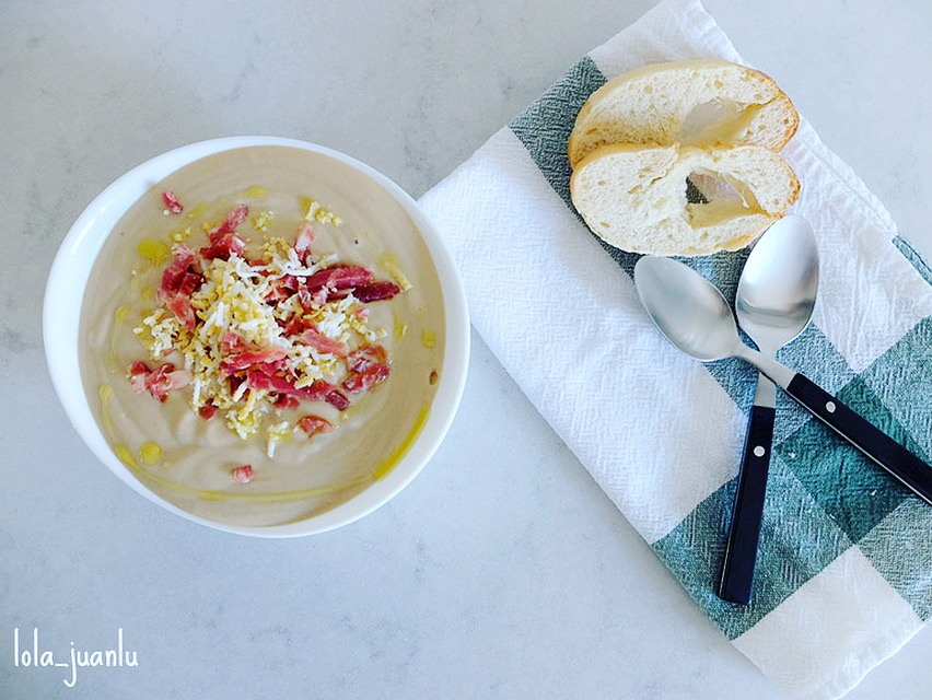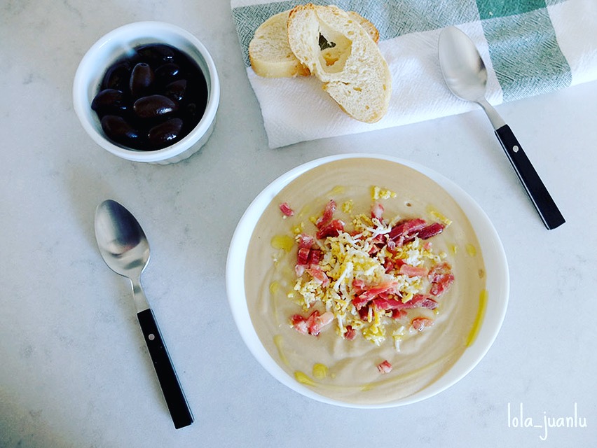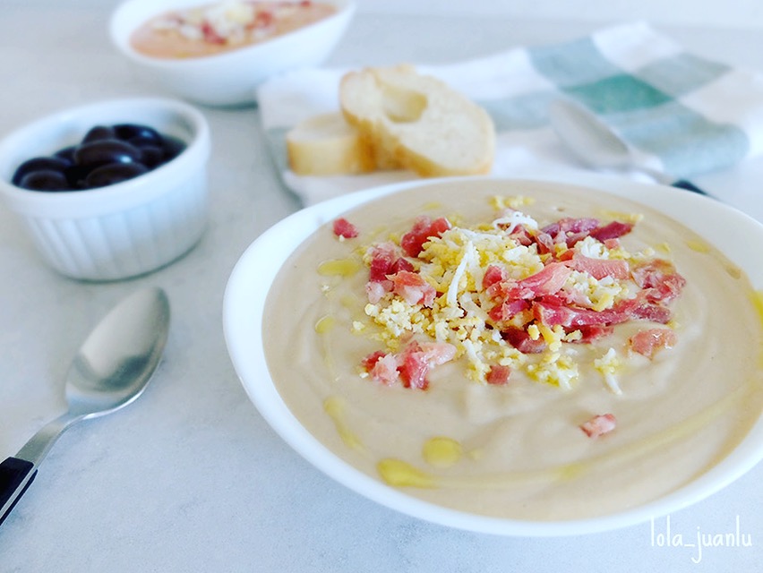 Se trata de un plato muy antiguo originario de Córdoba. Se podría decir que es la base del salmorejo antes de que los tomates llegaran de Las Américas, a principio del siglo XVI.