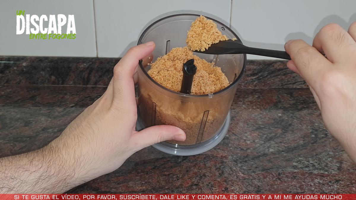 3Ahora incorporamos el azúcar glas al procesador de alimentos junto con los cacahuetes triturados.