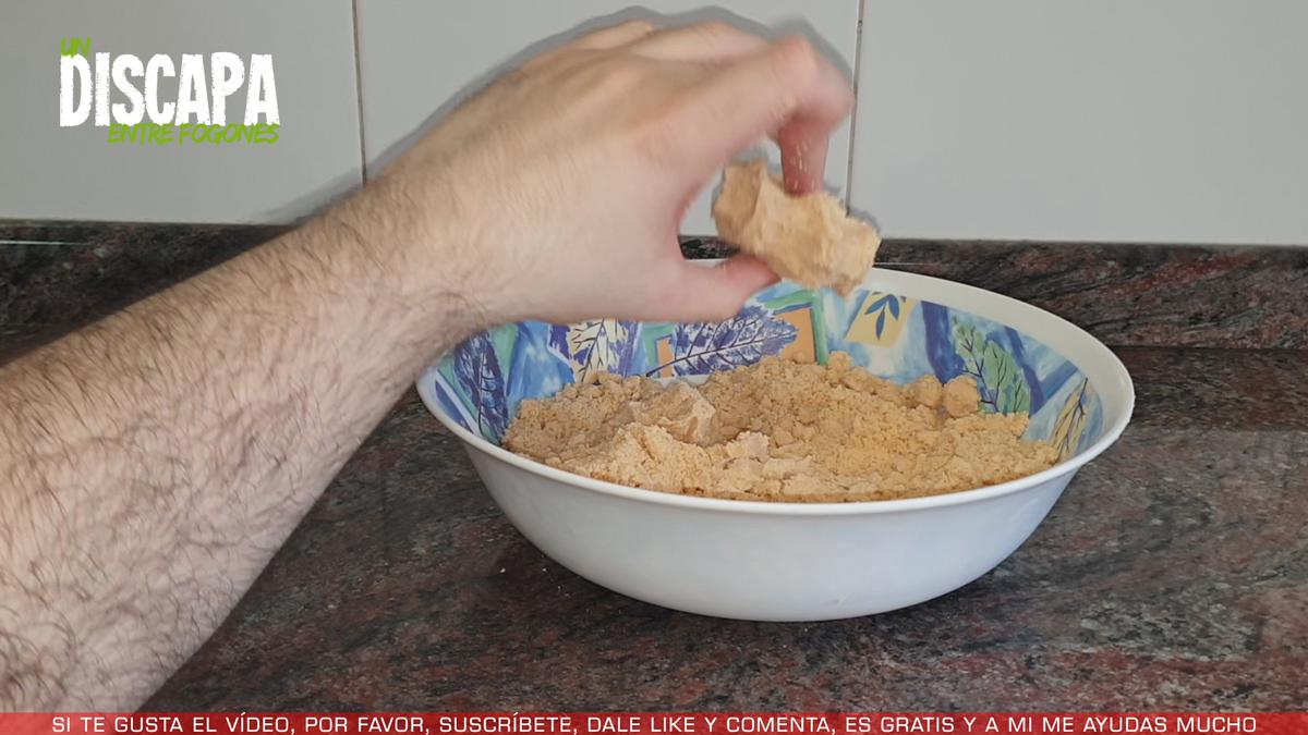 Y lo que vamos a hacer a continuación es coger la mezcla con las manos y la vamos a meter dentro del molde.