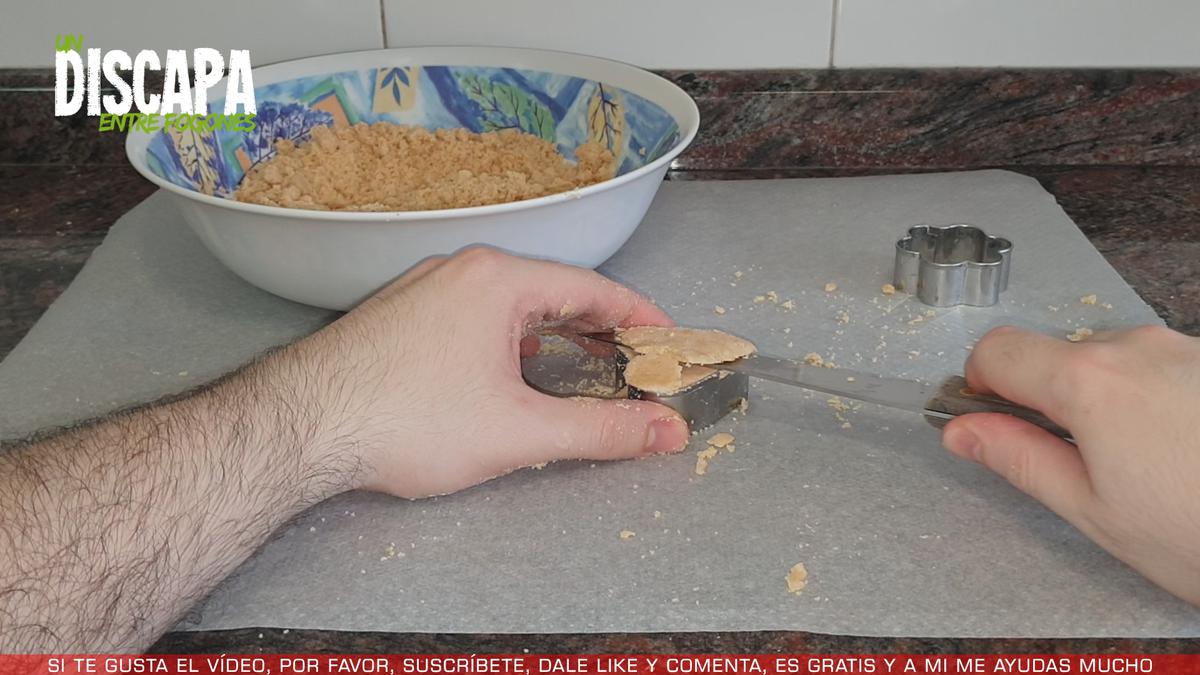 Y ahora pasamos un cuchillo al ras del molde para quitar el exceso de masa.