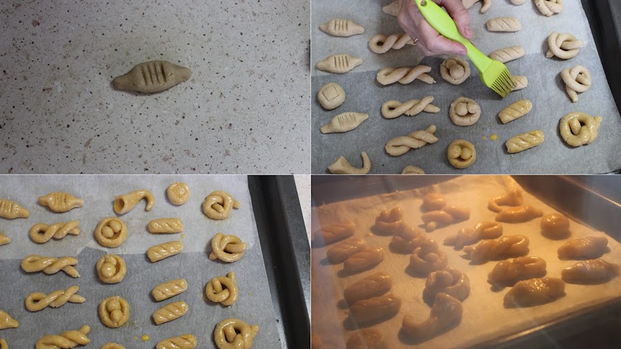 Pintamos las figuritas con la yema de huevo un poco batida por encima.