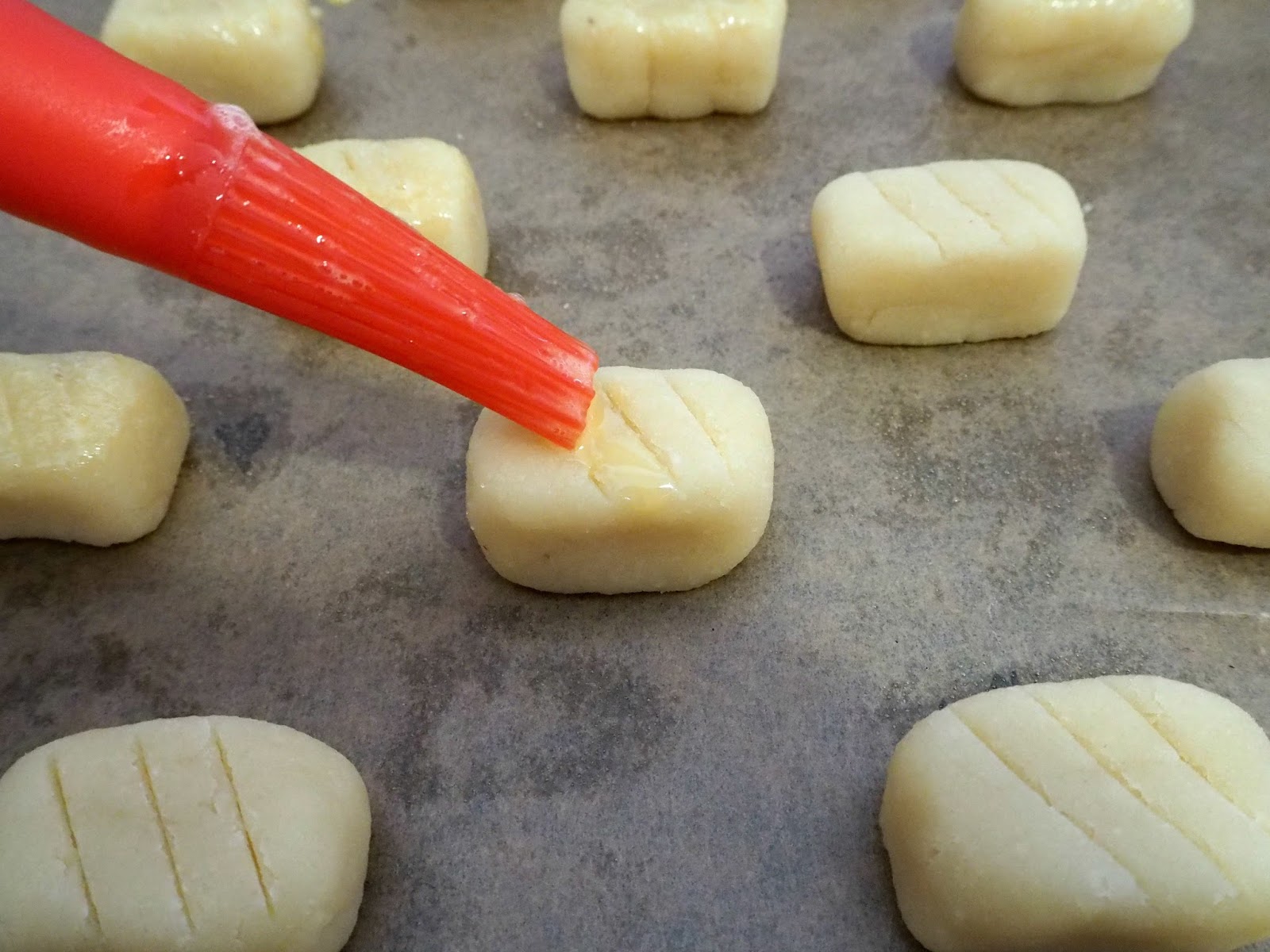 - Pintamos las figuras con la yema ligeramente batida, y metemos al horno a dorarlas con el grill. Hay que estar muy pendientes porque se doran en seguida y se podrían quemar si os pasáis de tiempo. En mi caso, algo le pasa al grill u me apsó al contrario, que se doraron poco. Aún así, lo saqué porque no quería que se acabara haciendo la masa y se pusiera dura. En cualquier caso quedaron genial.