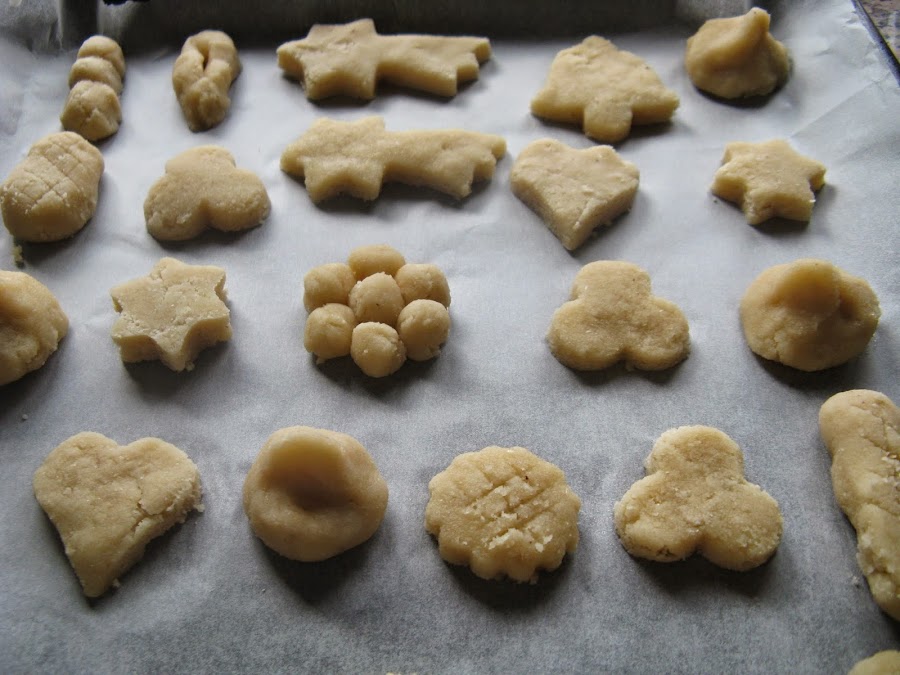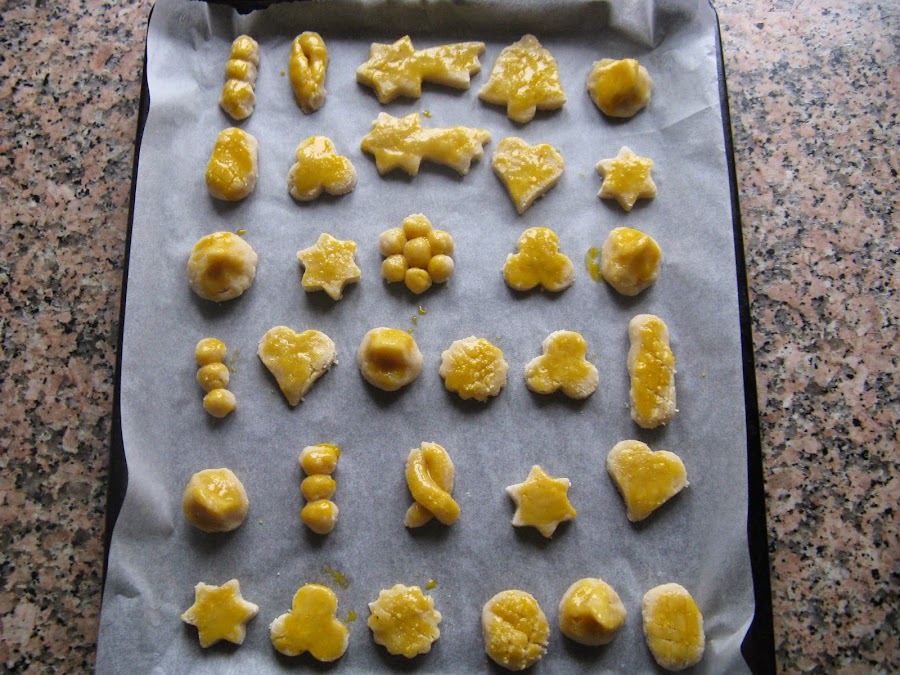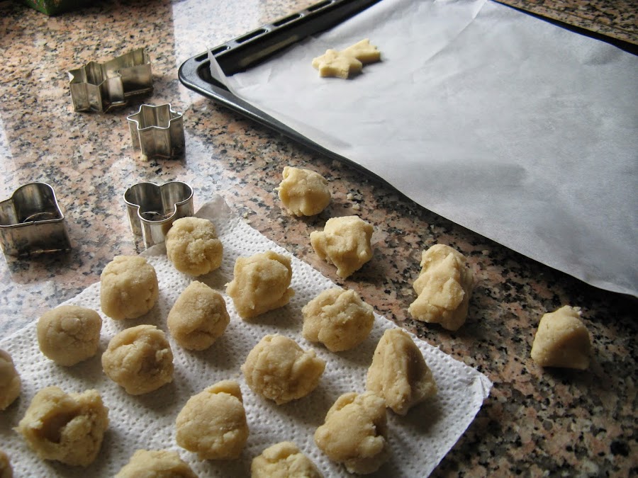 Utilicé los moldes que tengo para las pastas de té, además algunos son con motivos navideños así que genial, otros vais improvisando, los que son con bolitas suelen ser de la pasta que va sobrando al utilizar los moldes