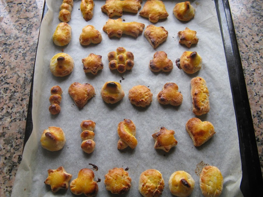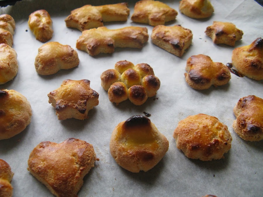 Yo en vez con el huevo entero lo hice solo con la yema porque me gusta el color tostado que queda después, pero eso como quiera cada uno, hay gente que los pinta solo con la clara, no pobré así que no sé como quedan si los hago otra vez probaré mitad y mitad y ya os contaré