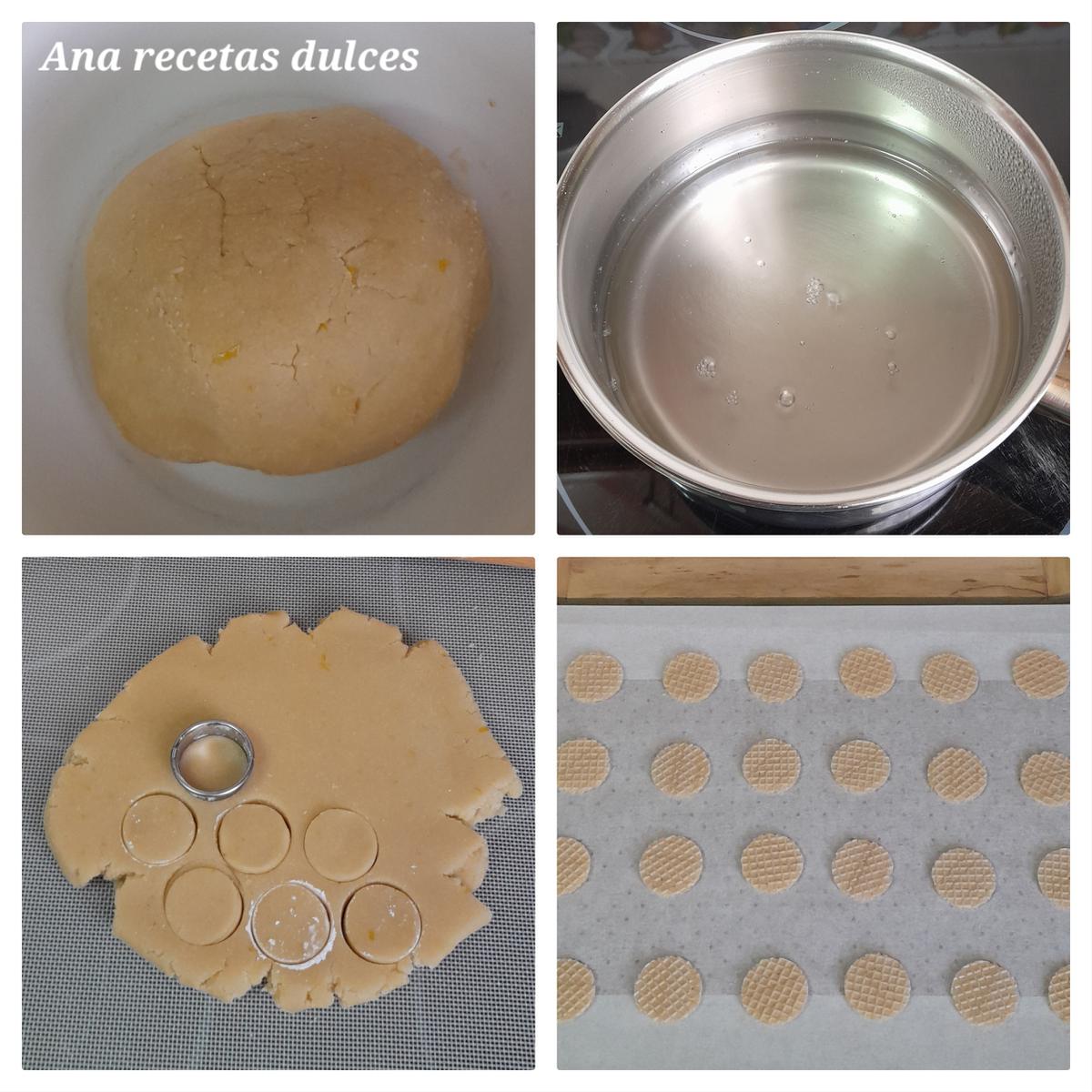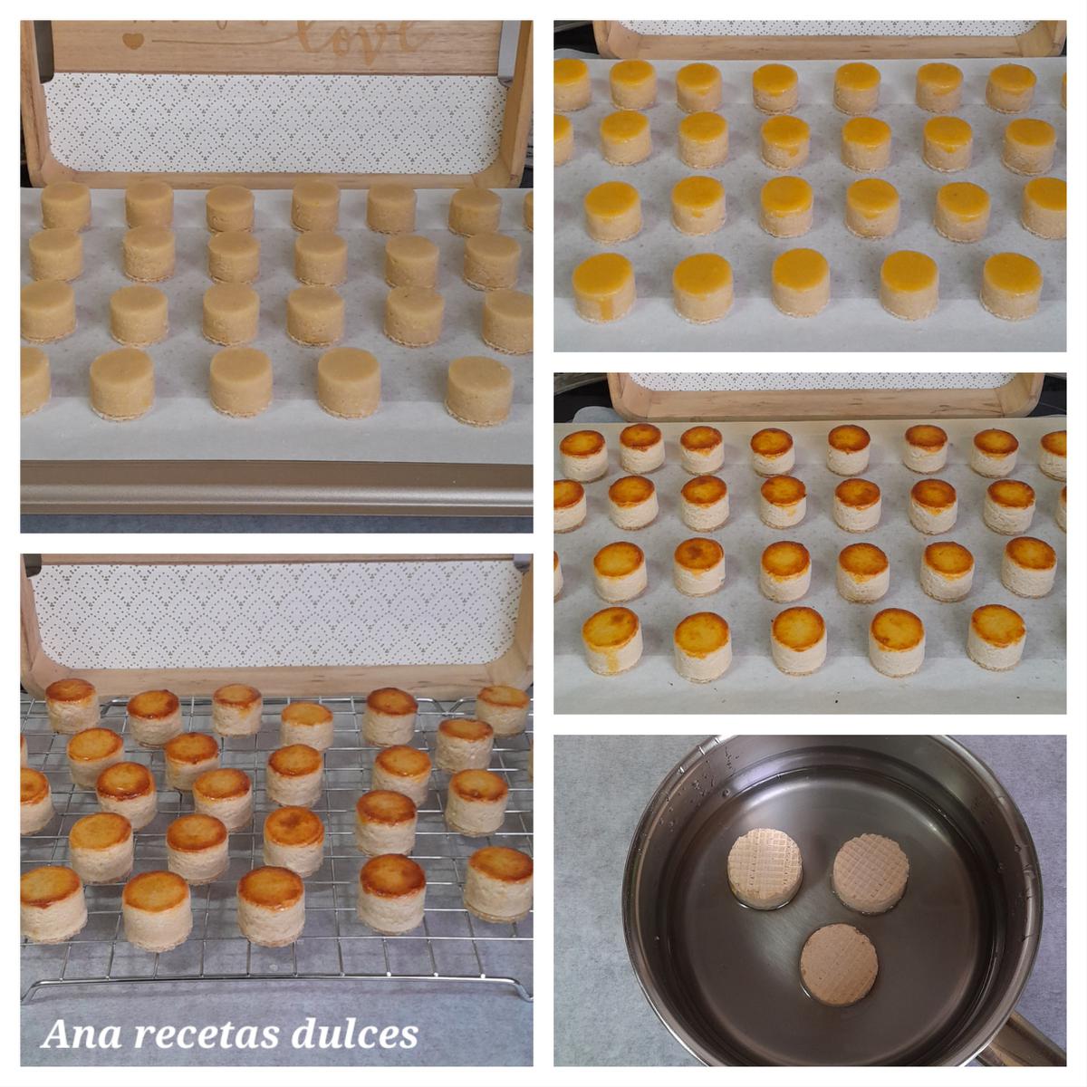 Estiramos la masa con un grosor de 2 centímetros y cortamos con un cortapastas de 3 centímetros de diámetro por 3 centímetros de alto.