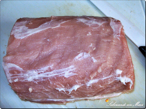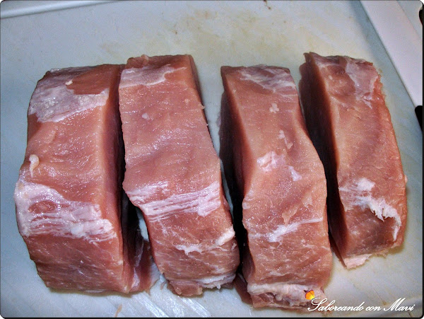 Empezamos con limpiar la cinta de lomo quitándose la capa de grasa que la rodea. Partimos en 4 medallones.