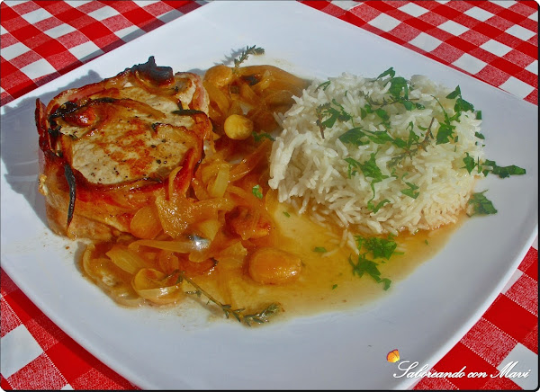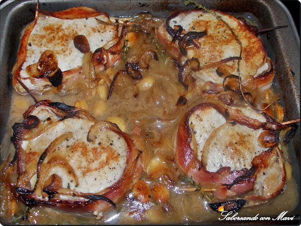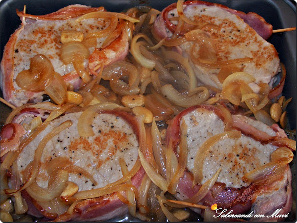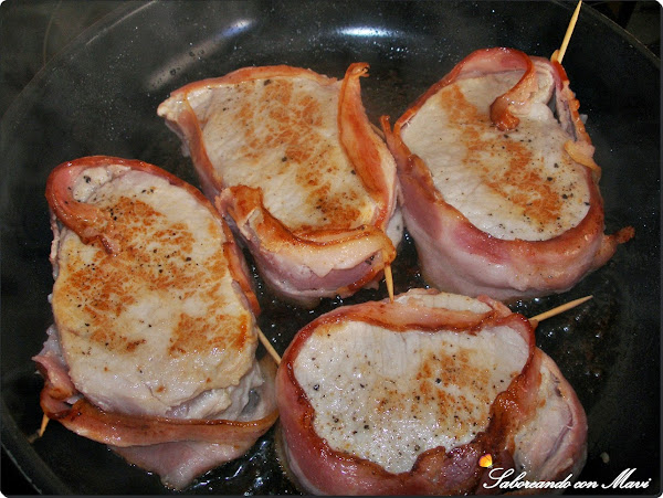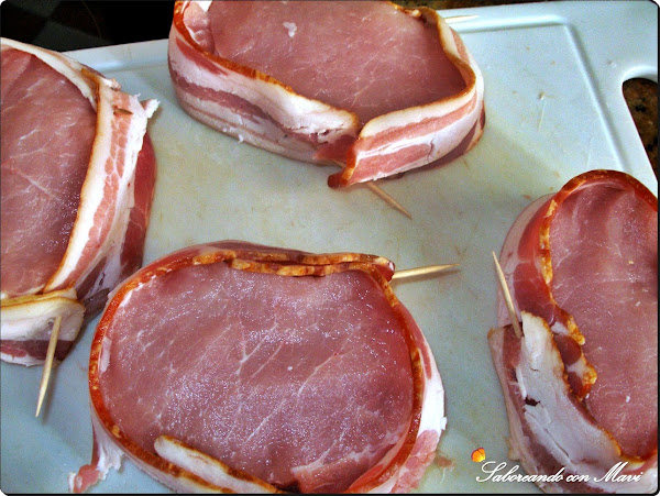 Cerramos los libritos sal-pimentamos y los rodeamos con beicon sujetando con palillos.