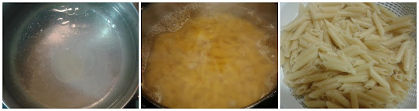Mientras, ponemos una olla al fuego con abundante agua y un chorro de aceite y sal, y tan pronto empiece a hervir, echamos los macarrones, y dejamos cocer durante 12 minutos (podéis ver aquí un truco para que no se peguen los macarrones). Escurrimos los macarrones.
