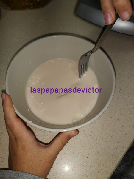 Y a mezclar con cuidado de dentro para fuera para q no se salga todo
