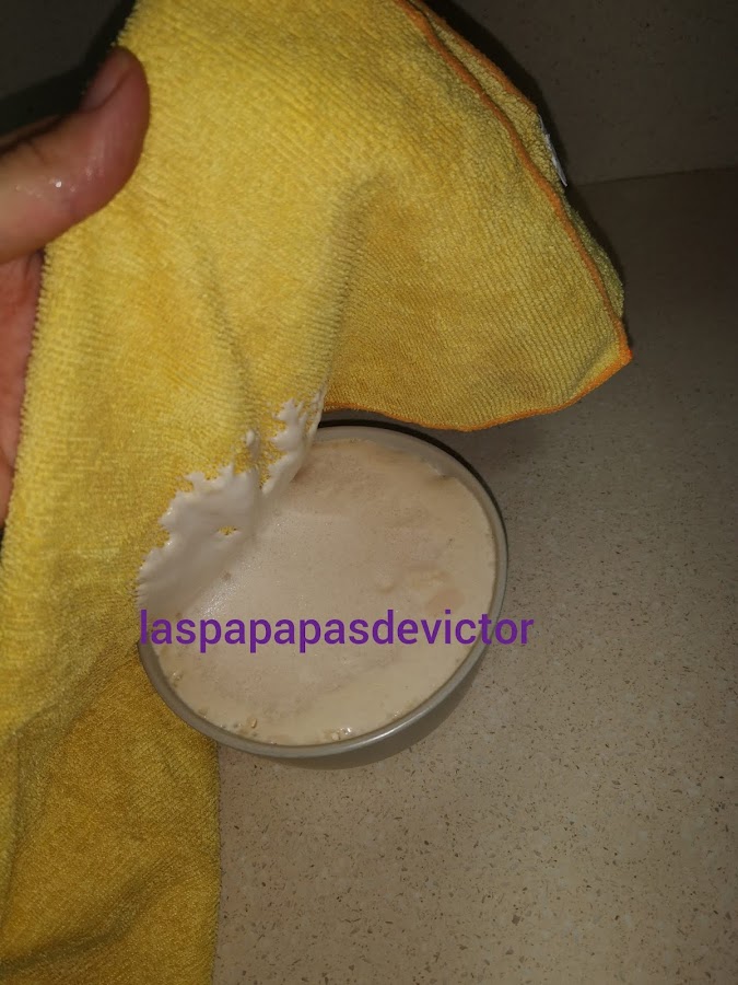 Lo mezclais todo hasta disolver la levadura y lo tapais y dejad esperad 10-15min